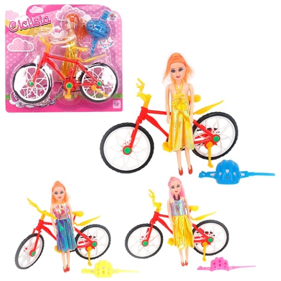 BONECA CICLISTA FASHION COM BICICLETA E CAPACETE COLORS NA CARTELA WELLKIDS