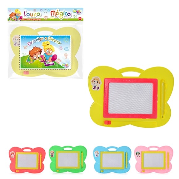 TIPO DE PRODUTO: LOUSA MAGICA RETANGULAR BORBOLETA COLORS COM CANETA