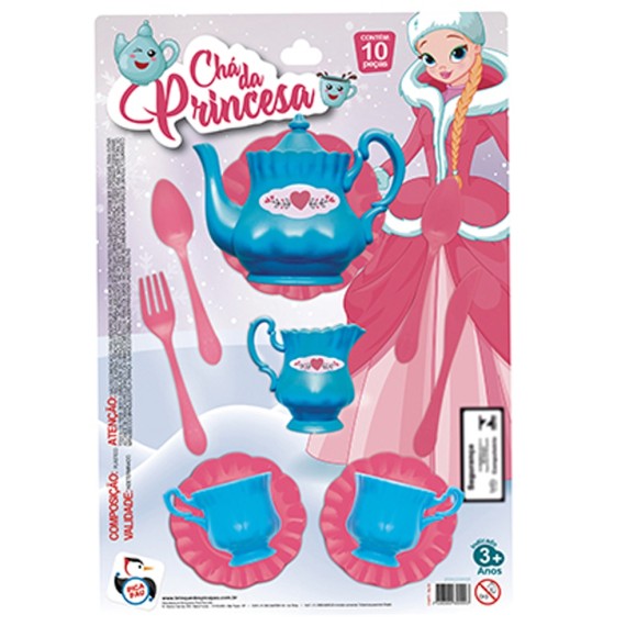 KIT COZINHA INFANTIL CHAZINHO COM BULE + TALHERES E ACESSORIOS CHA DA PRINCESA 11 PECAS