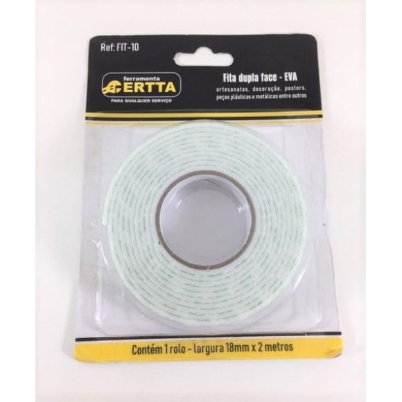 - FITA ADESIVA DUPLA FACE EVA EM ROLO LARGURA 18 MM X 2 METROS USO EM ARTESANATOS, DECORAÇÃO, POSTERS, PEÇAS PLASTICAS ENTRE OUTROS