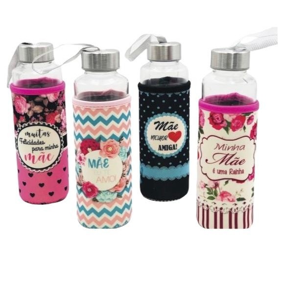 Garrafa de Vidro 400ML Com Capa Homenagem Mãe
