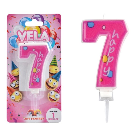 VELA DE ANIVERSÁRIO NÚMERO 7 COR ROSA ART FANTSY