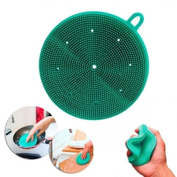 Além de higiênica, a esponja é flexível e resistente, muito útil para lavar louças sem riscar, pois suas cerdas são em silicone macio, podendo também servir de base para panelas quentes.