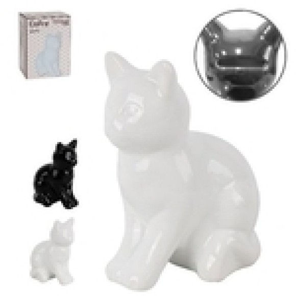 COFRE GATO CERAMICA PRETO E BRANCO