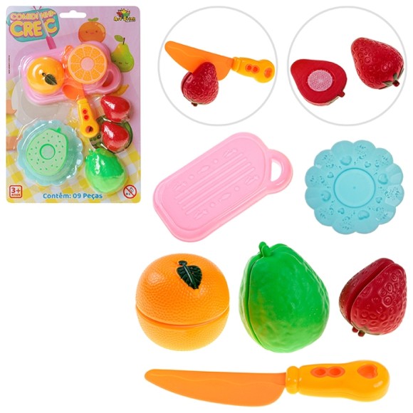 OBSERVAÇÕES CONTÉM 1 TÁBUA DE CORTE, 1 FACA E 3 FRUTAS COM VELCRO QUE PODEM SER PARTIDAS AO MEIORecomendado acima de 3 anos por conter pecas pequenas