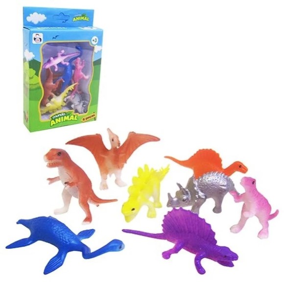 Tipo de produto: 1 kit animal dinossauro com 8 peças na caixa